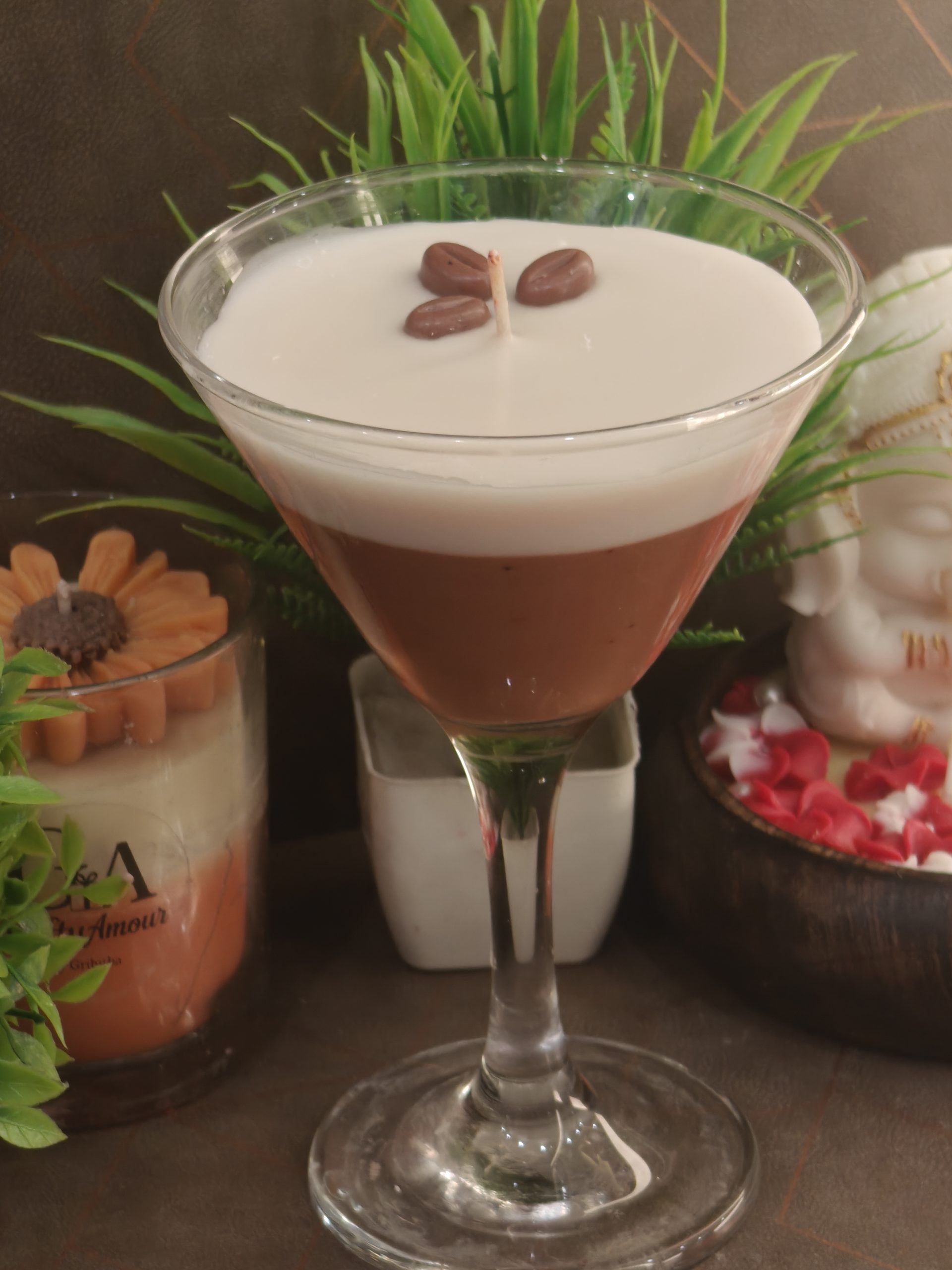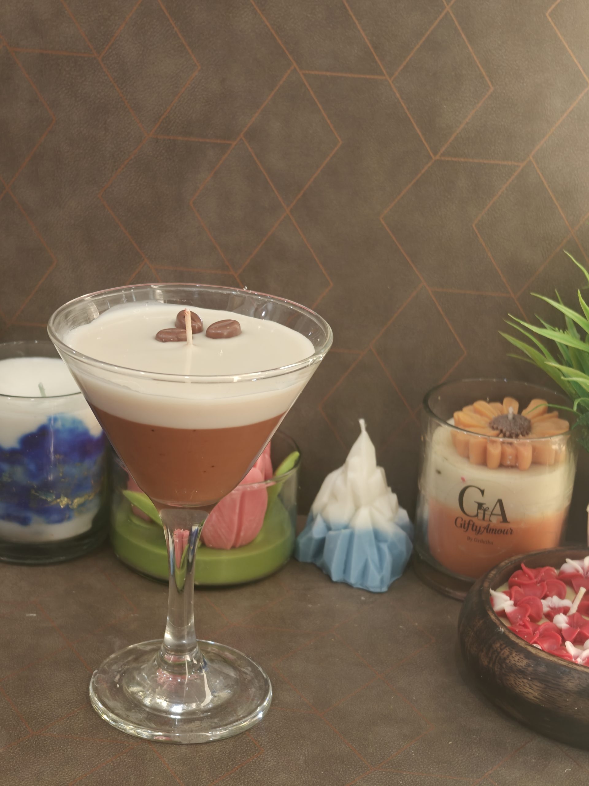 Design: Martini glass shape with layered wax and coffee bean detailing